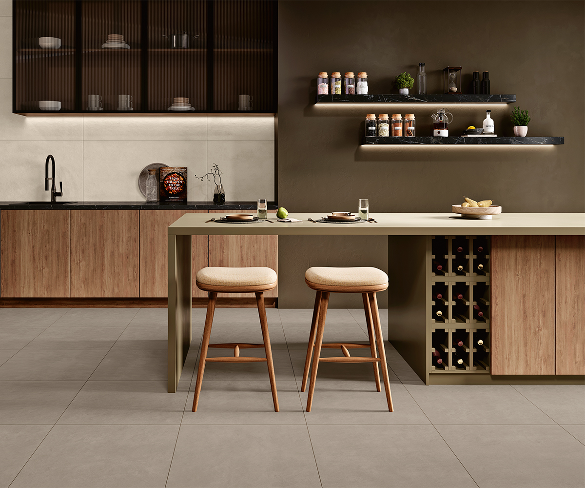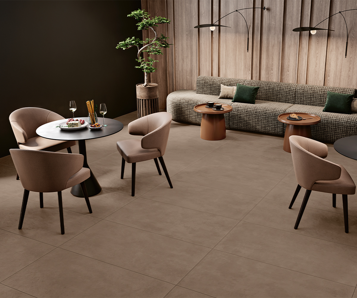 Ob im Wohnzimmer, in der Küche oder in gewerblichen Räumen – die KERMOS Home Design Fliesen schaffen ein kohärentes und modernes Ambiente, das durch seine zurückhaltende Betonoptik besticht.