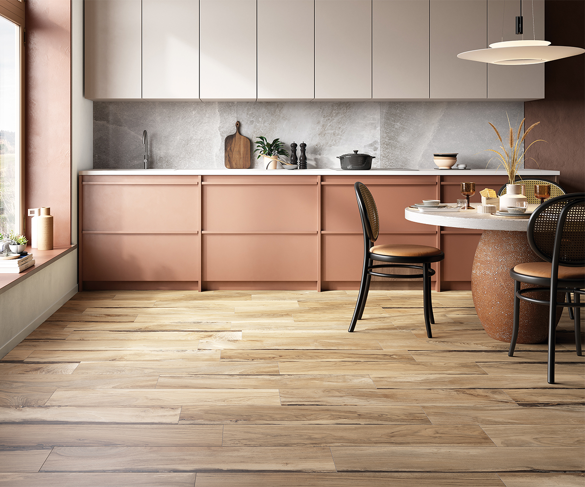 KERMOS Plank verwandelt mit ihrer rustikalen und charakteristischen Holzoptik jeden Raum in ein einladendes, warmes Umfeld. Die Fliesenserie bietet eine faszinierende Vielfalt an Farben und Texturen, die durch die starken Adern und warmen Holztöne zum Leben erweckt werden.