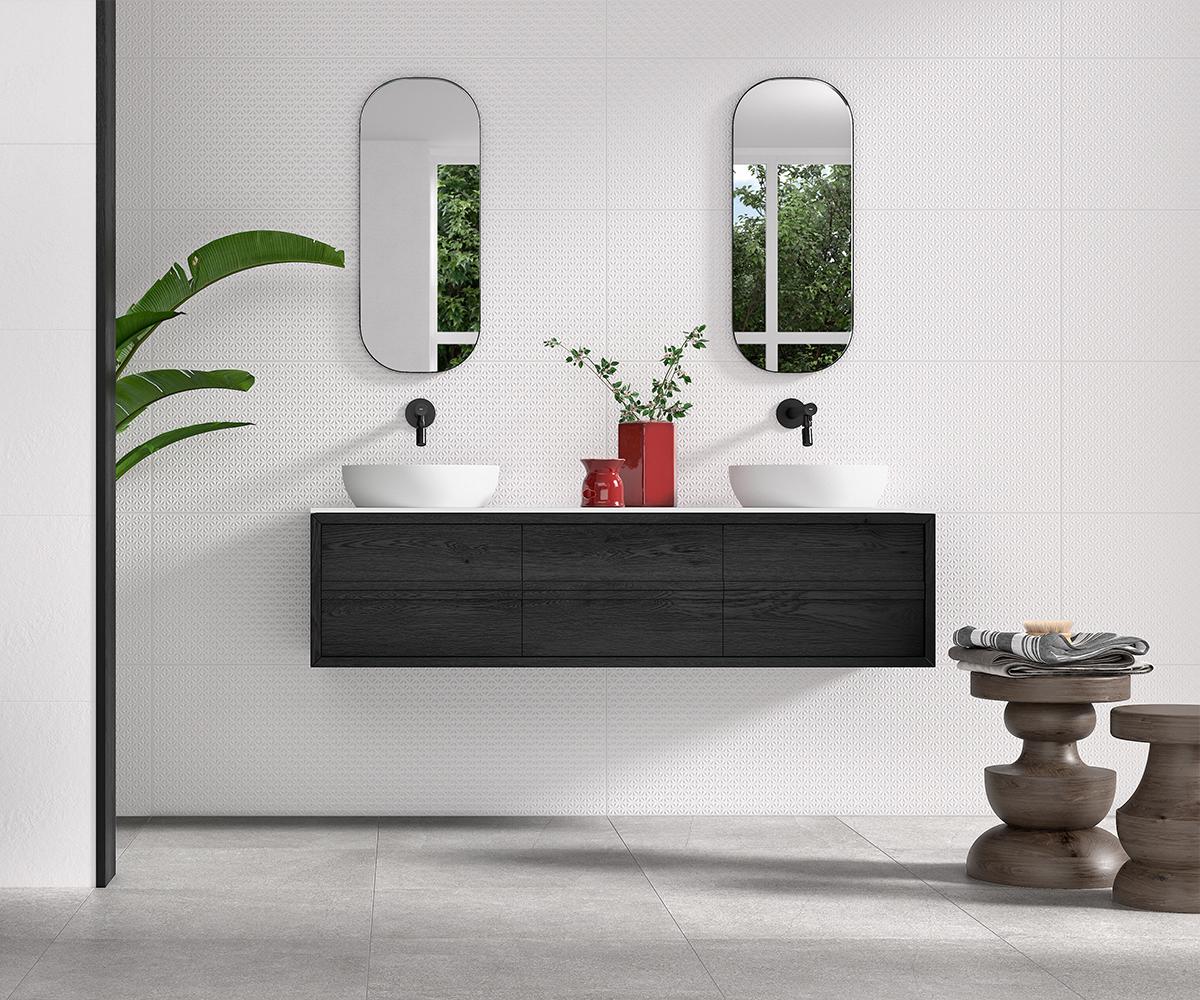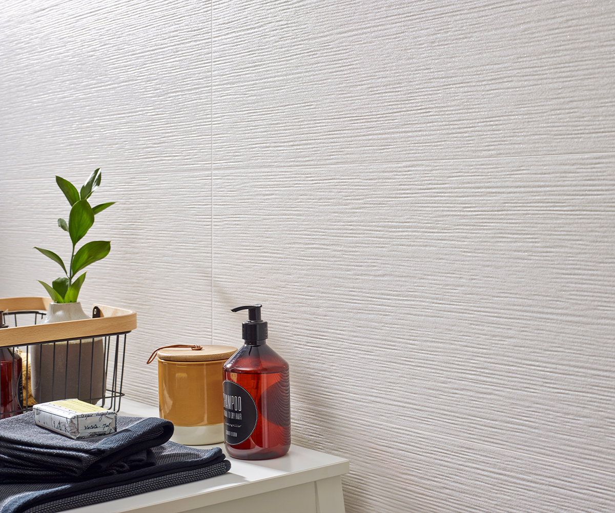 Mit ihren unterschiedlichen Texturen, der Dreidimensionalität und den leichten Spuren von Glanz sind die Fliesen von KERMOS Sugar eine attraktive Keramiklösung und auch perfekt als Ergänzung von anderen weißen Kollektionen geeignet.