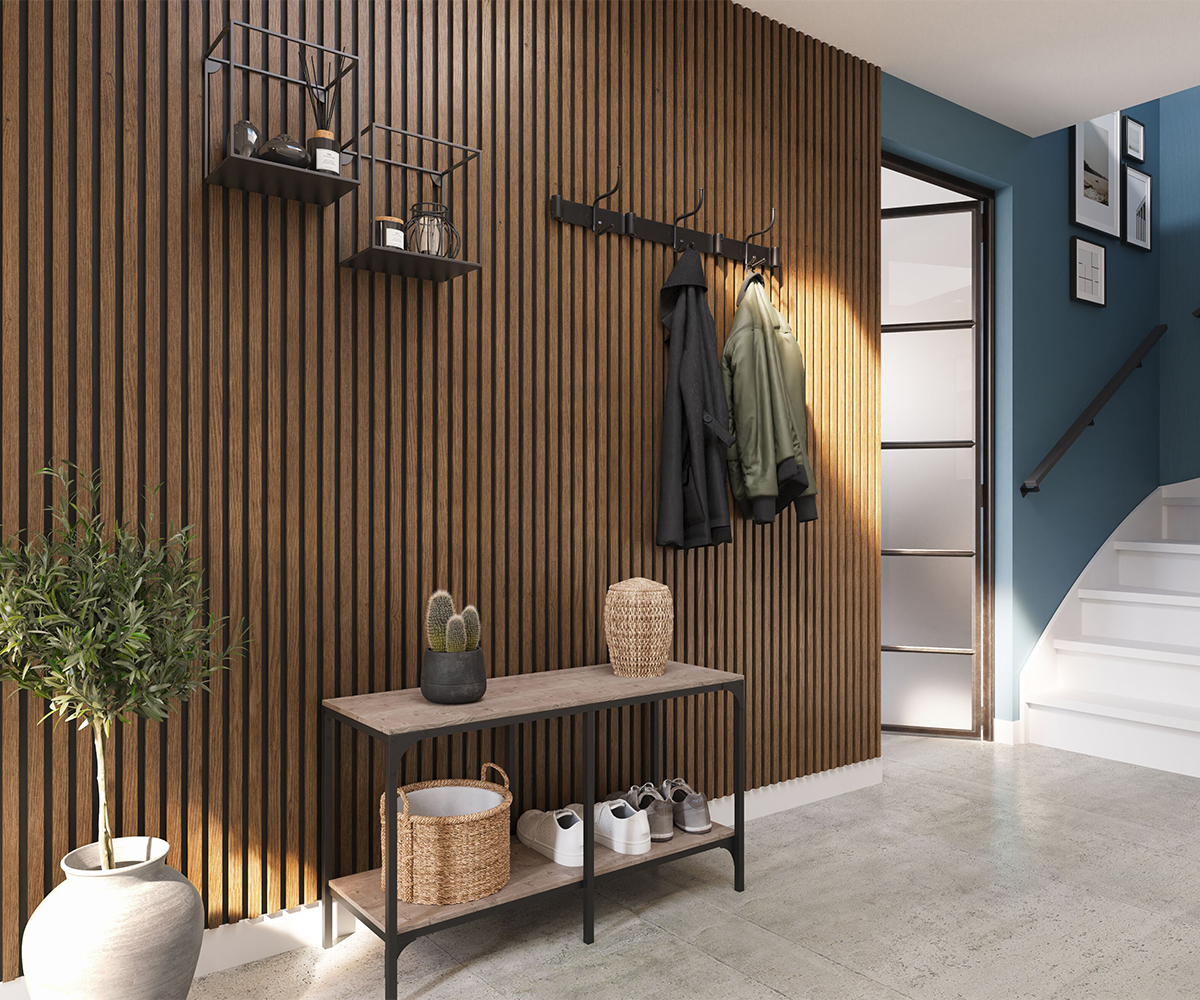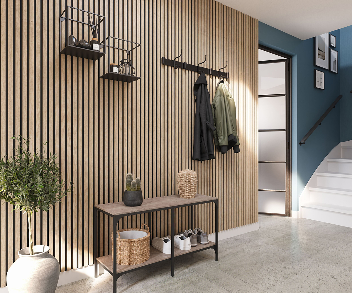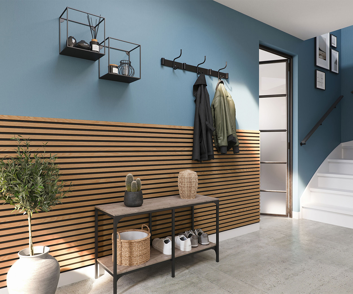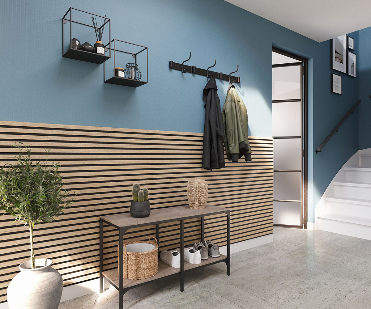 KERMOS acoustic panels add stylish accents to any room in no time at all. The modern wood-effect elements transform rooms into cosy retreats, visually separate the home office area from the living area or enhance the appearance of the entrance area.