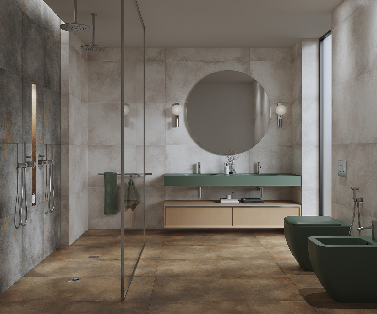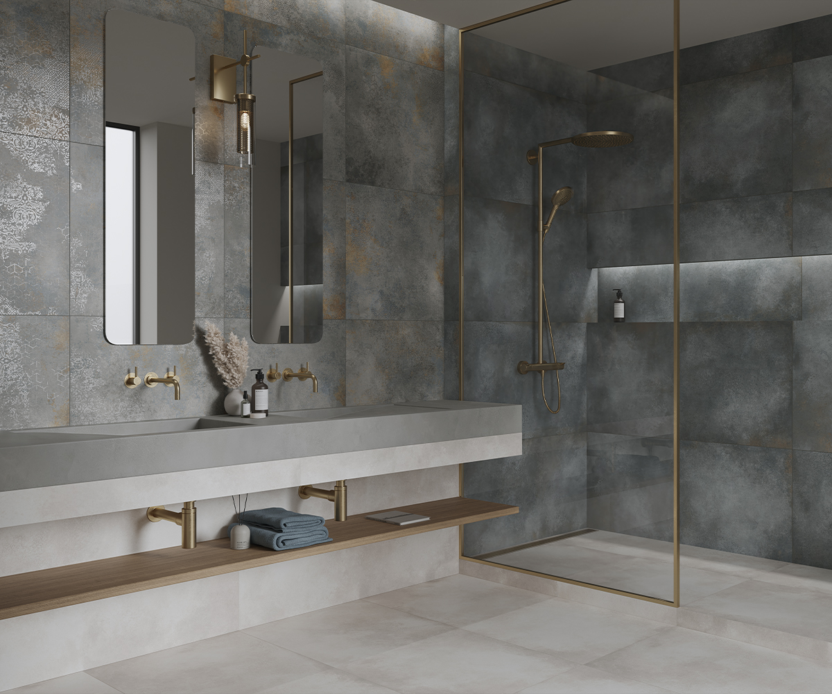The KERMOS Chrome tile series is ideal for interiors where elegant design and practical use go hand in hand. Its robust and slip-resistant surface ensures safety even in areas with high moisture exposure. At the same time, the metallic sheen gives the tiles a glamorous touch that creates an exclusive ambience in both private and commercial spaces.
