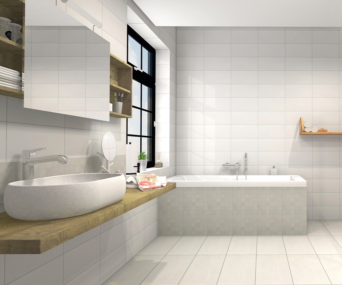 The KERMOS Semento tile series has a timeless concrete look. The colors and patterns in the series suit many different interior designs. The series includes sizes ranging from 5 x 5 cm tiles suitable for shower rooms to 60 x 60 cm tiles, so the tiles in the series can be used in a variety of ways in all kinds of spaces.