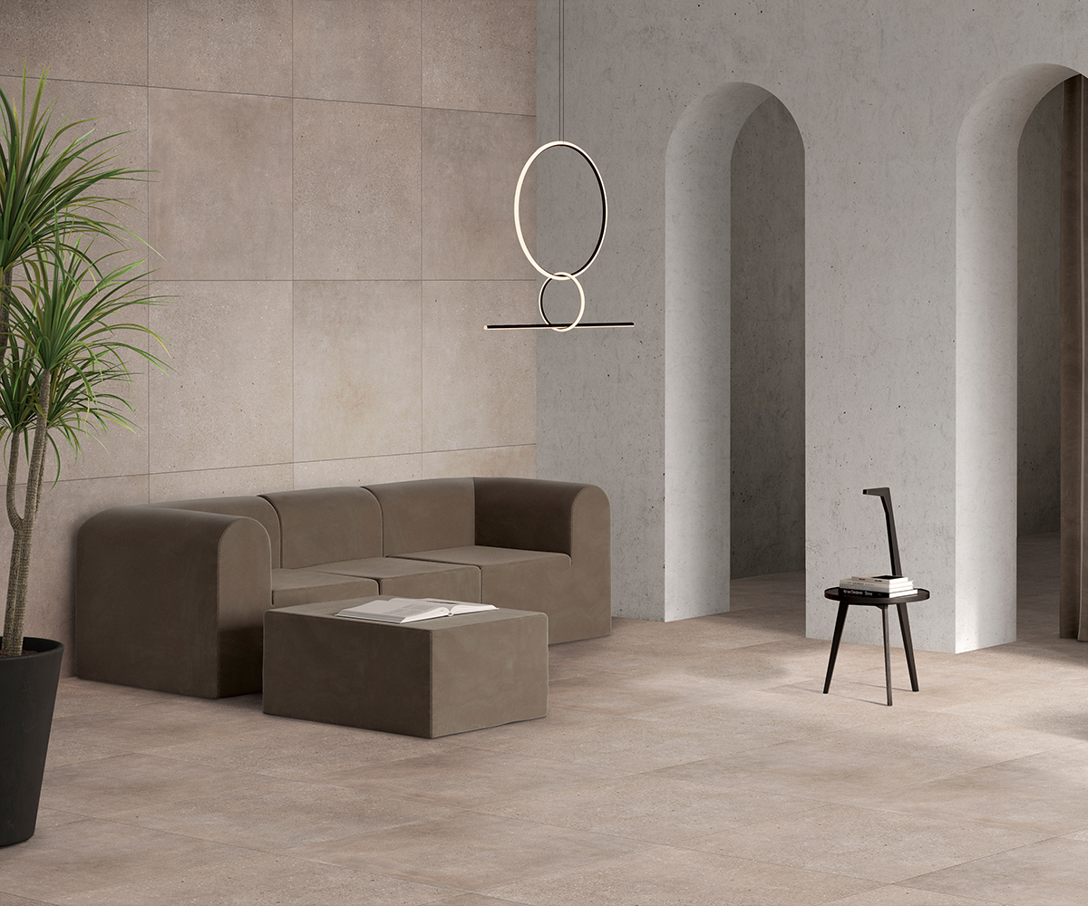 With its modern concrete look, KERMOS Flakestone perfectly captures the spirit of metropolitan life and brings a lively and individual character to any room.