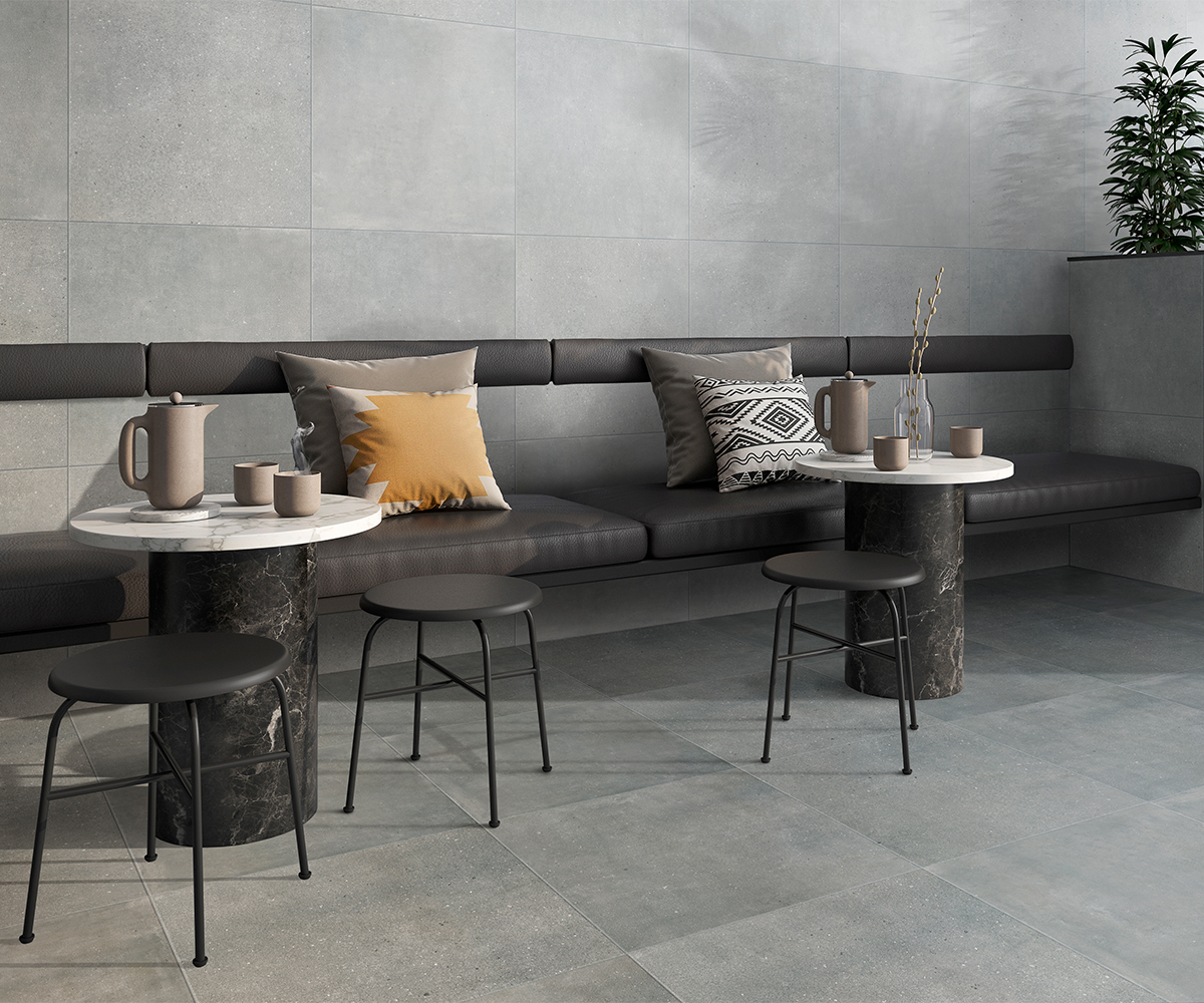 Thanks to the modern colour palette and wide range of formats, you will always find the right tile to suit your interior design style. There are five colours and formats to choose from for walls and floors. You can choose from large-format (60 × 120 cm) or small (30 × 30 cm) tiles.
