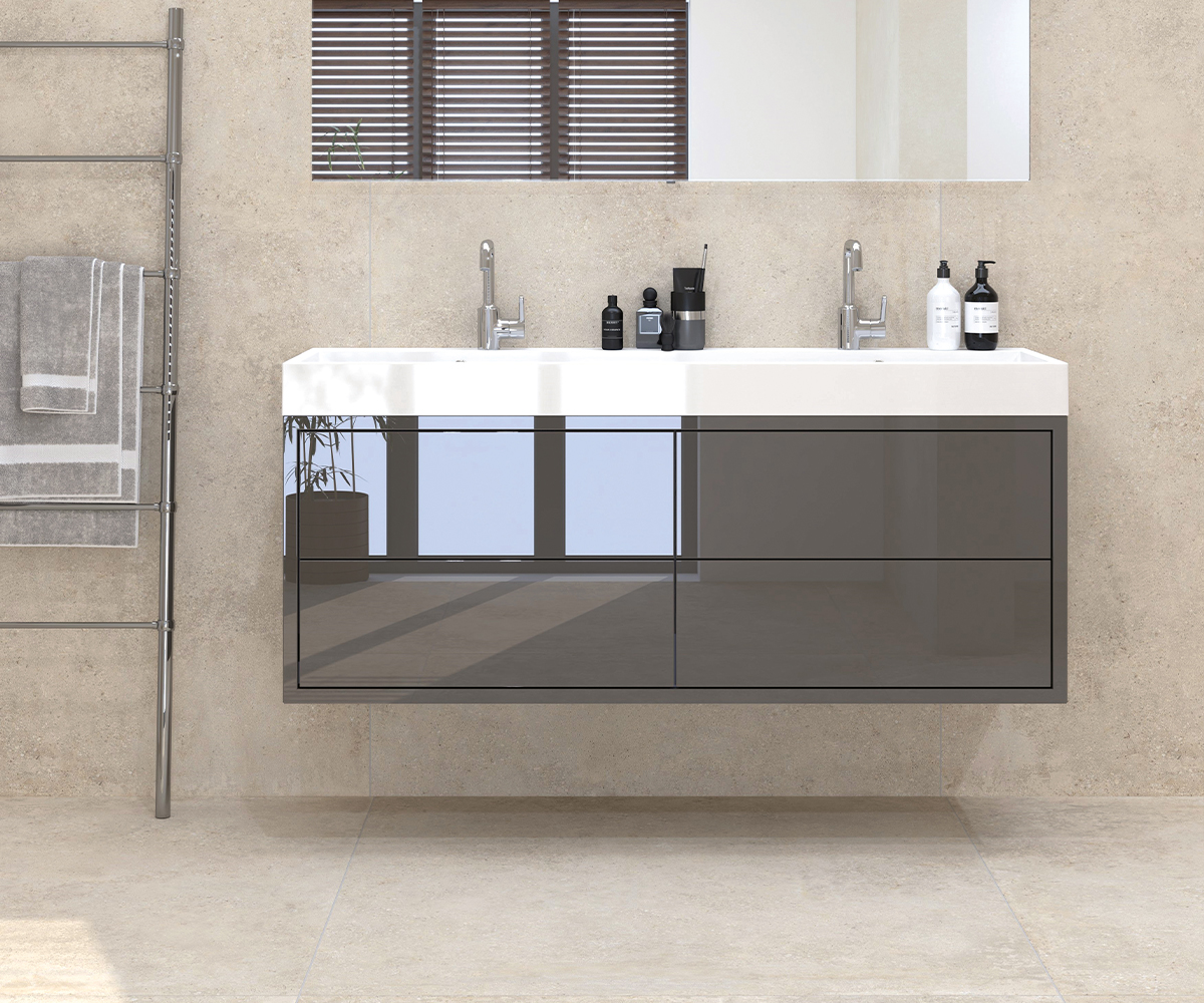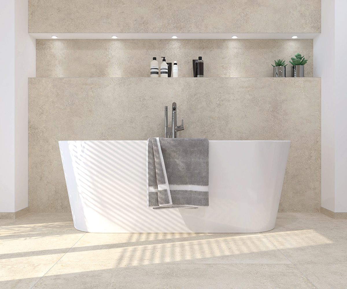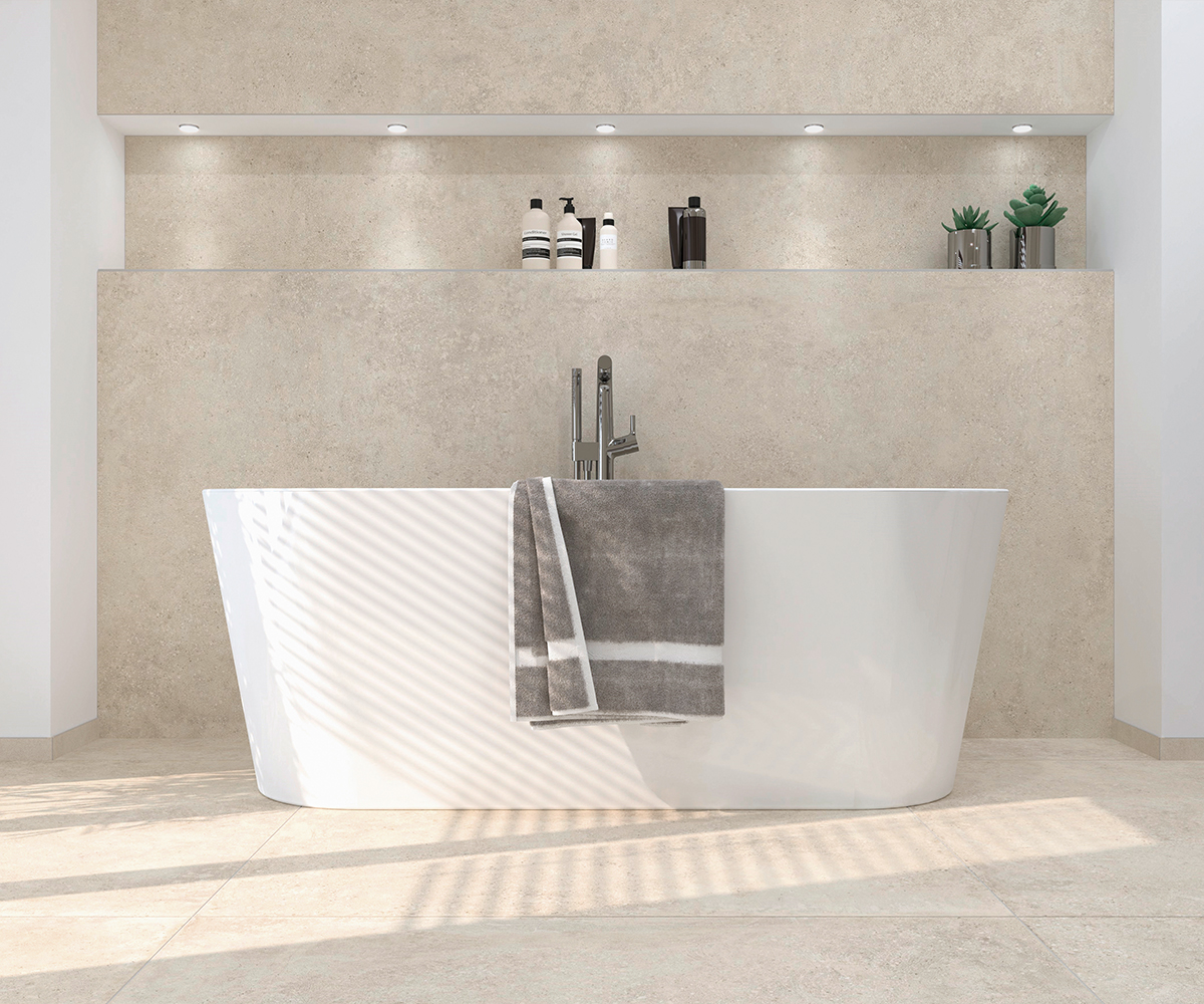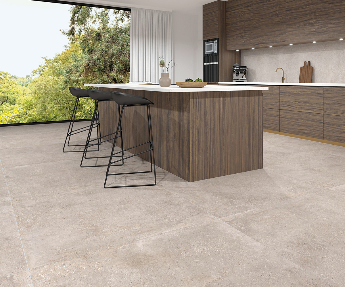KERMOS Solana combines soft light with a natural stone and concrete look, creating a warm, authentic atmosphere in any room. The variety of colours and formats offers countless design options for walls and floors.